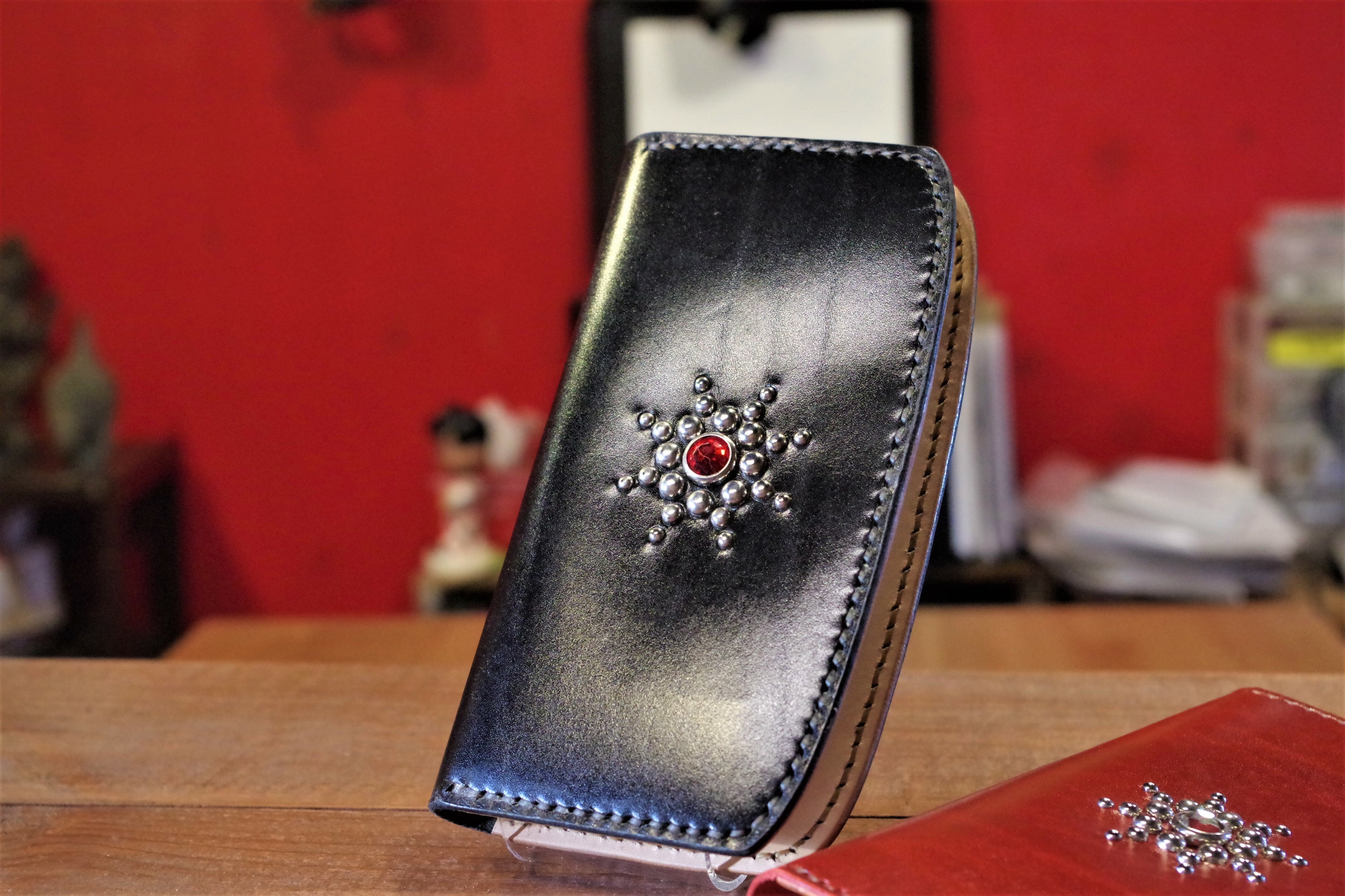 ベルギー産のルガトショルダー×サドルレザー(グレージング)のスマホカバー。