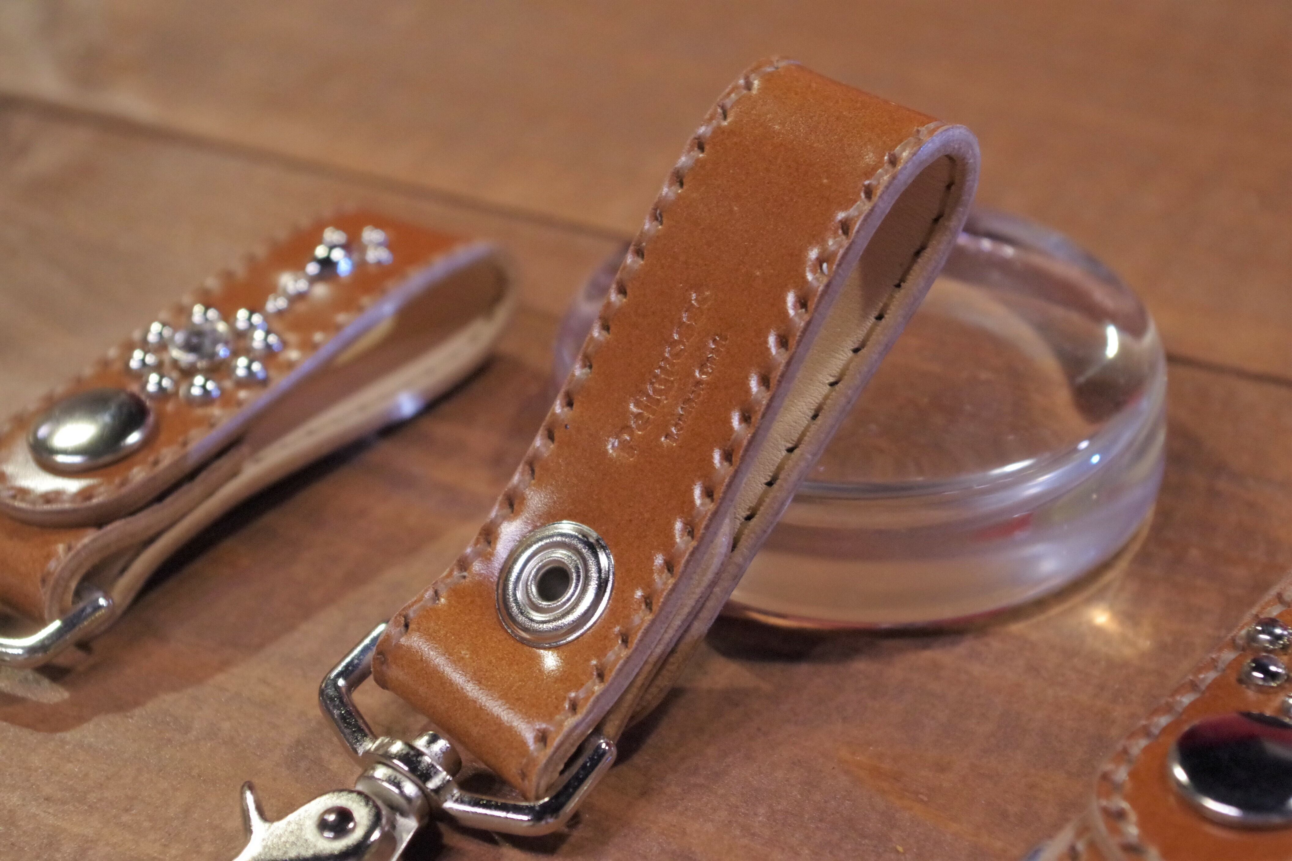 キーホルダー(茶コードバン/スワロ色ークリスタル)