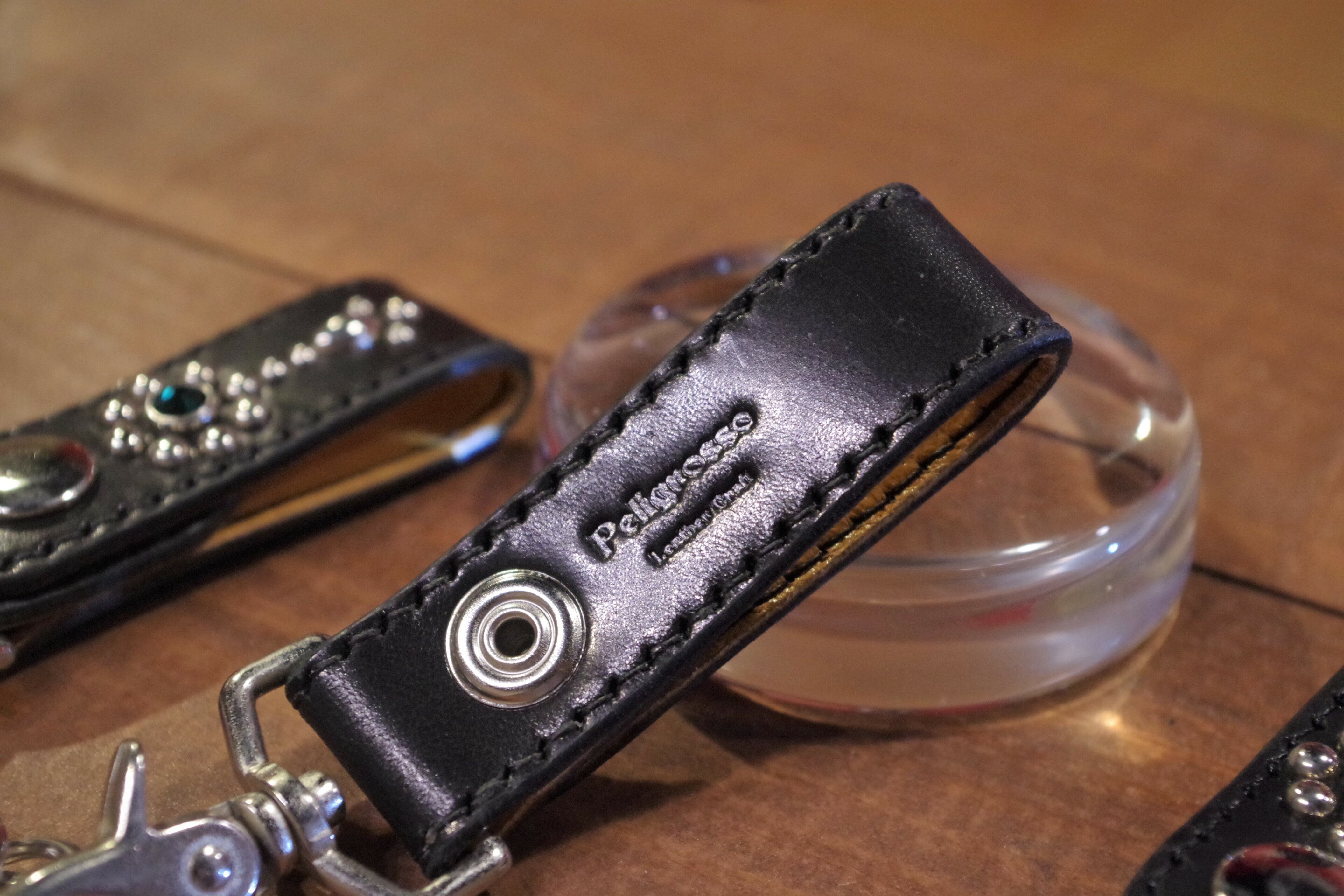 栃木レザー(黒)×豚革のキーホルダー。