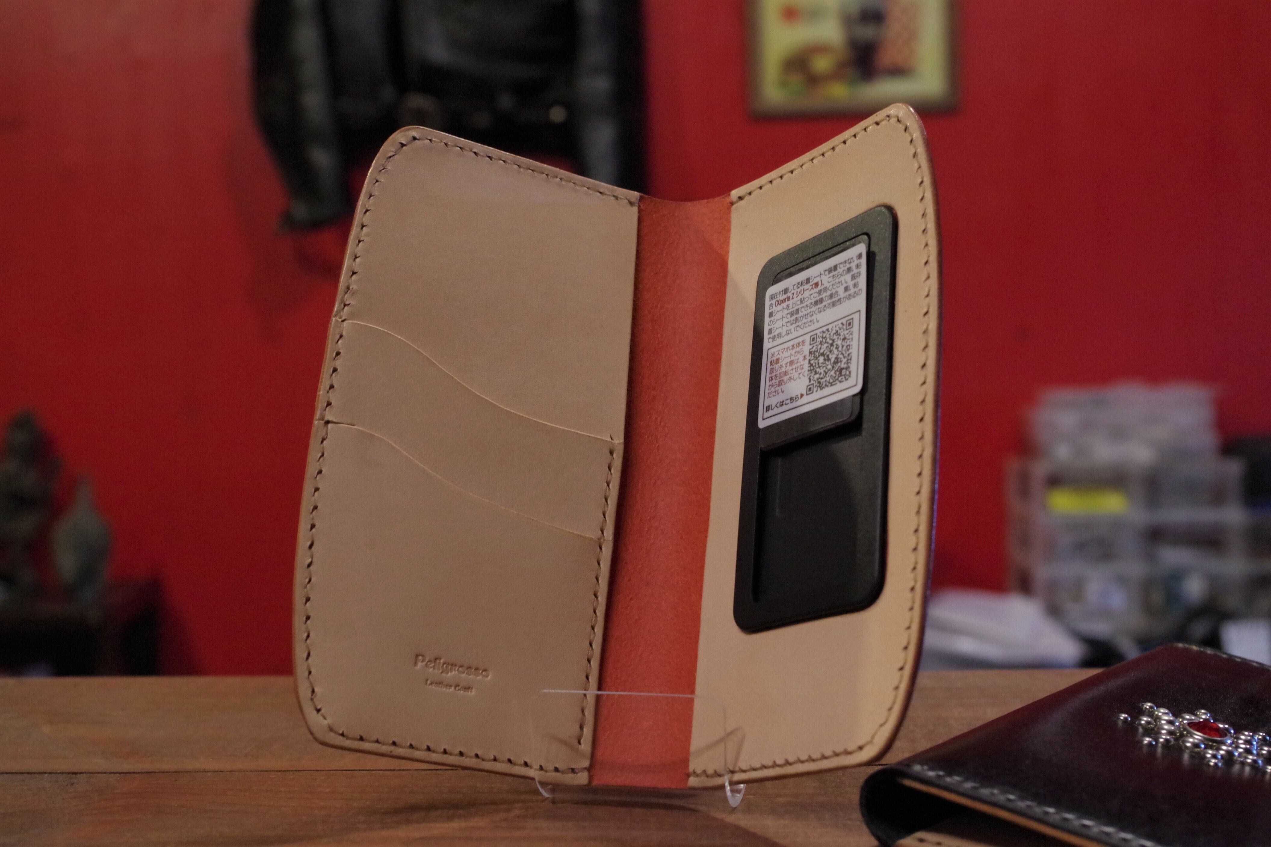 ベルギー産のルガトショルダー×サドルレザー(グレージング)のスマホカバー。