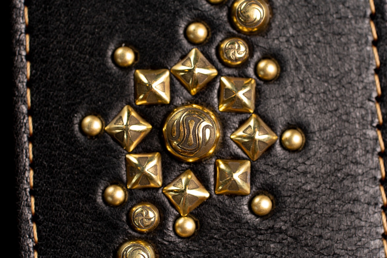 スタッズを打った後に裏に革を張っているため、爪も出ていない贅沢仕様です。それでいてしなやかで柔らかく、この革だからこそ味わえる触り心地、着け心地を楽しんでいただけます。
